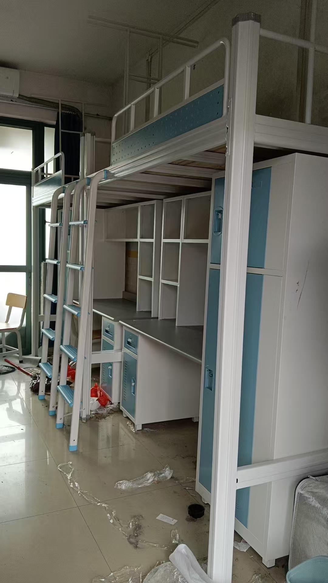 施工期间,后勤保障部门严格把控施工质量与安全,挑选符合国家安全标准、材质坚固耐用、设计科学合理的新铁床,组织专业施工团队进场作业。施工人员严格按照操作规程,分工协作、规范施工,先对老旧铁床进行有序拆卸、清理,再精准安装新铁床,全程做好安全防护措施,避免施工过程中对学生学习生活造成影响。同时,工厂安排专人现场监督,对每一张新安装的铁床进行逐一检查,重点排查床体稳固性、螺丝紧固度等关键环节,确保新铁床符合安全标准,让学生住得放心。